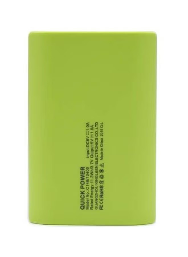 باور بانك خارجي صغير وخفيف بسعة بطارية 10400 mAh يشحن موبايلك وأجهزتك أثناء التنقل، مثالي للسفر والاستخدام اليومي. يتميز بتصميم بسيط ولونه الأبيض مع الأخضر، مع منفذ شحن USB واحد وحماية من التيار المفاجئ لتوفير شحن آمن لجهازك. مناسب لشحن الهاتف عدة مرات قبل الحاجة لإعادة شحنه بنفس الباور بانك.