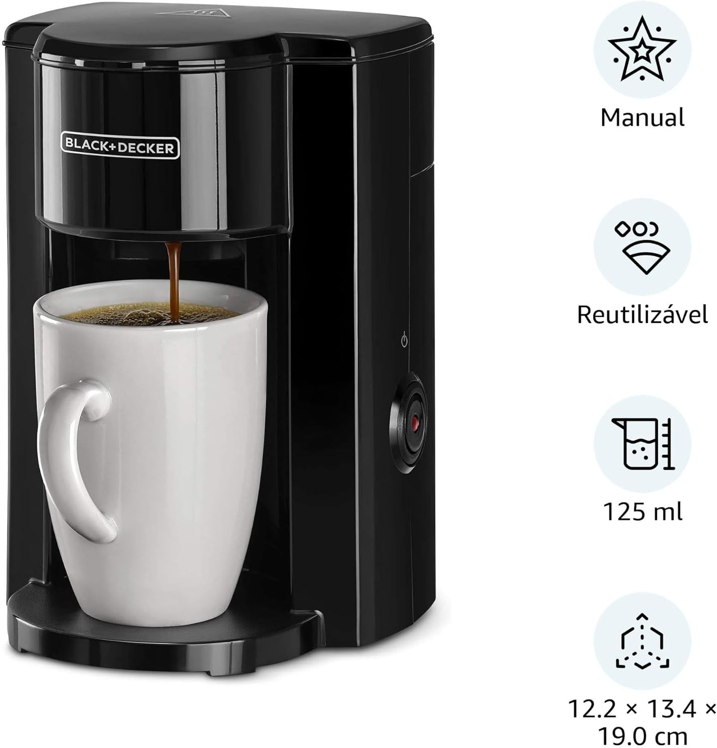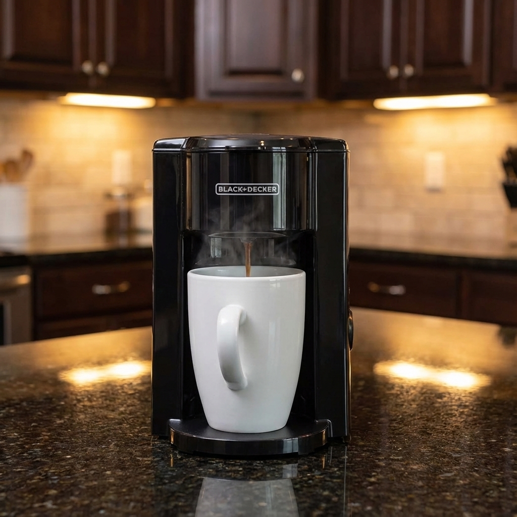 ماكينة قهوة بلاك اند ديكر أسود – كوب واحد، جسم بولي بروبلين وبورسلين
