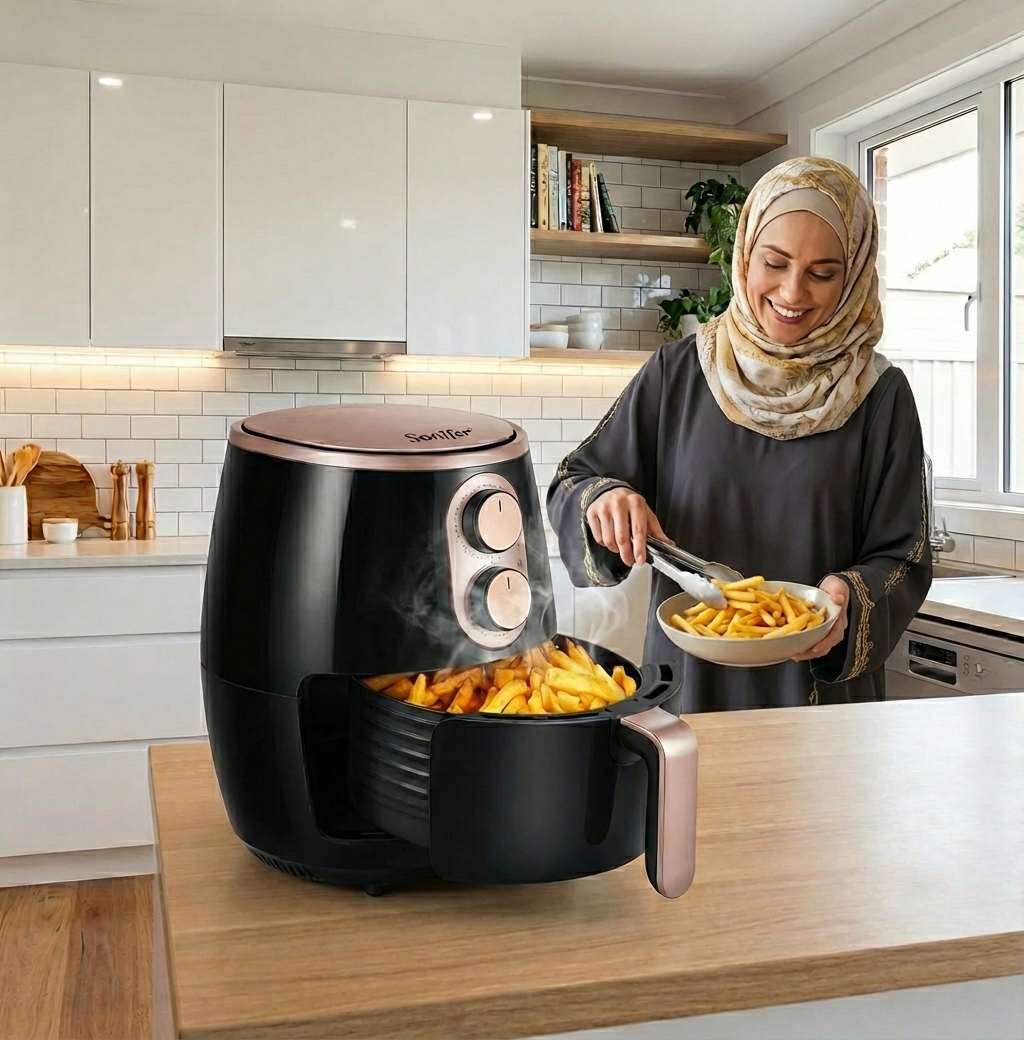 استمتع بطهي صحي وسريع مع مقلاة هوائية ذكية من سونيفر بسعة 3.6 لتر. تعمل بدون زيت، كهربائية ومتعددة الوظائف، مثالية لجميع الأطعمة، ومتوفرة بألوان متعددة.